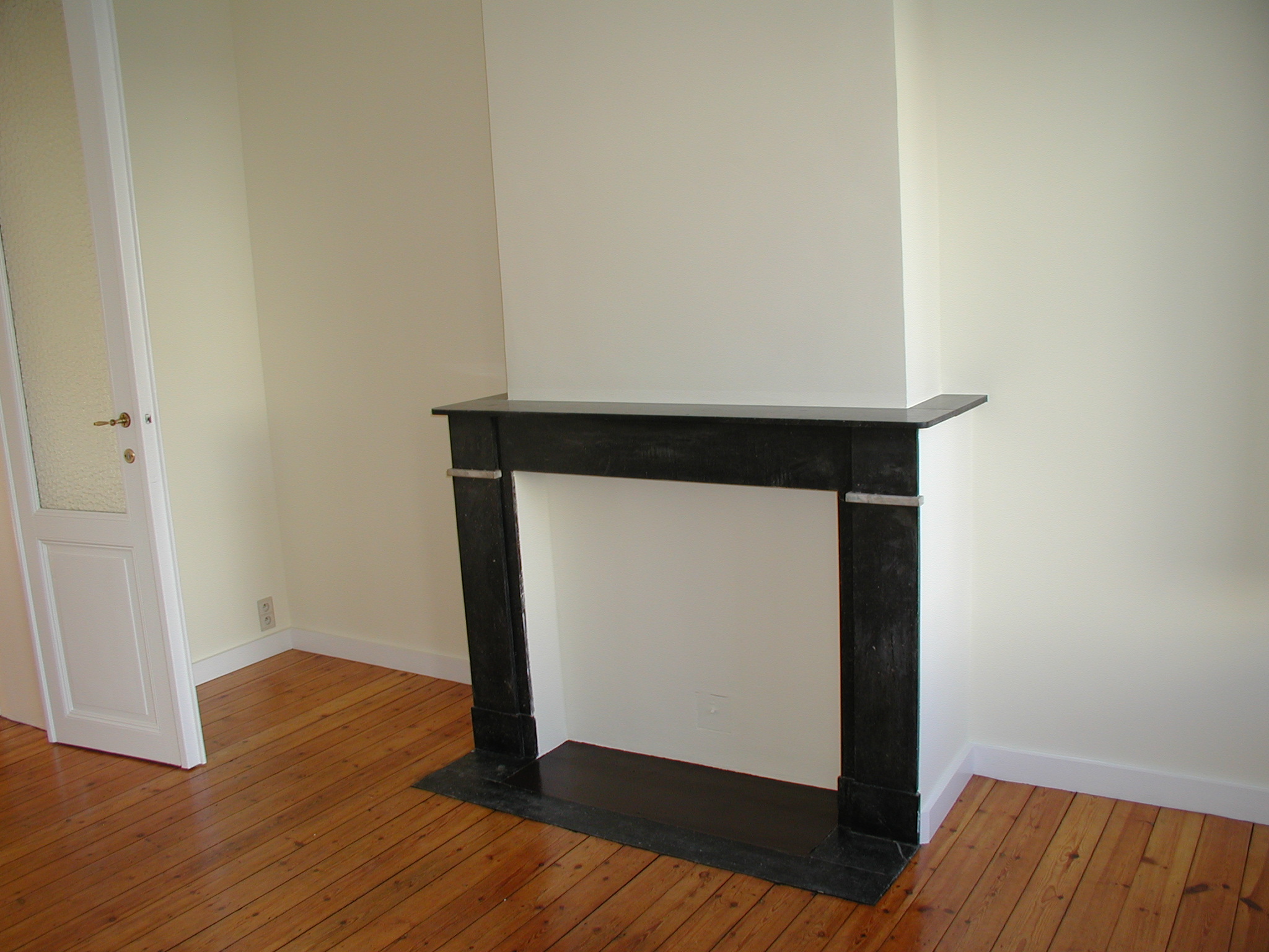 | Une cheminée avec manteau en pierre |