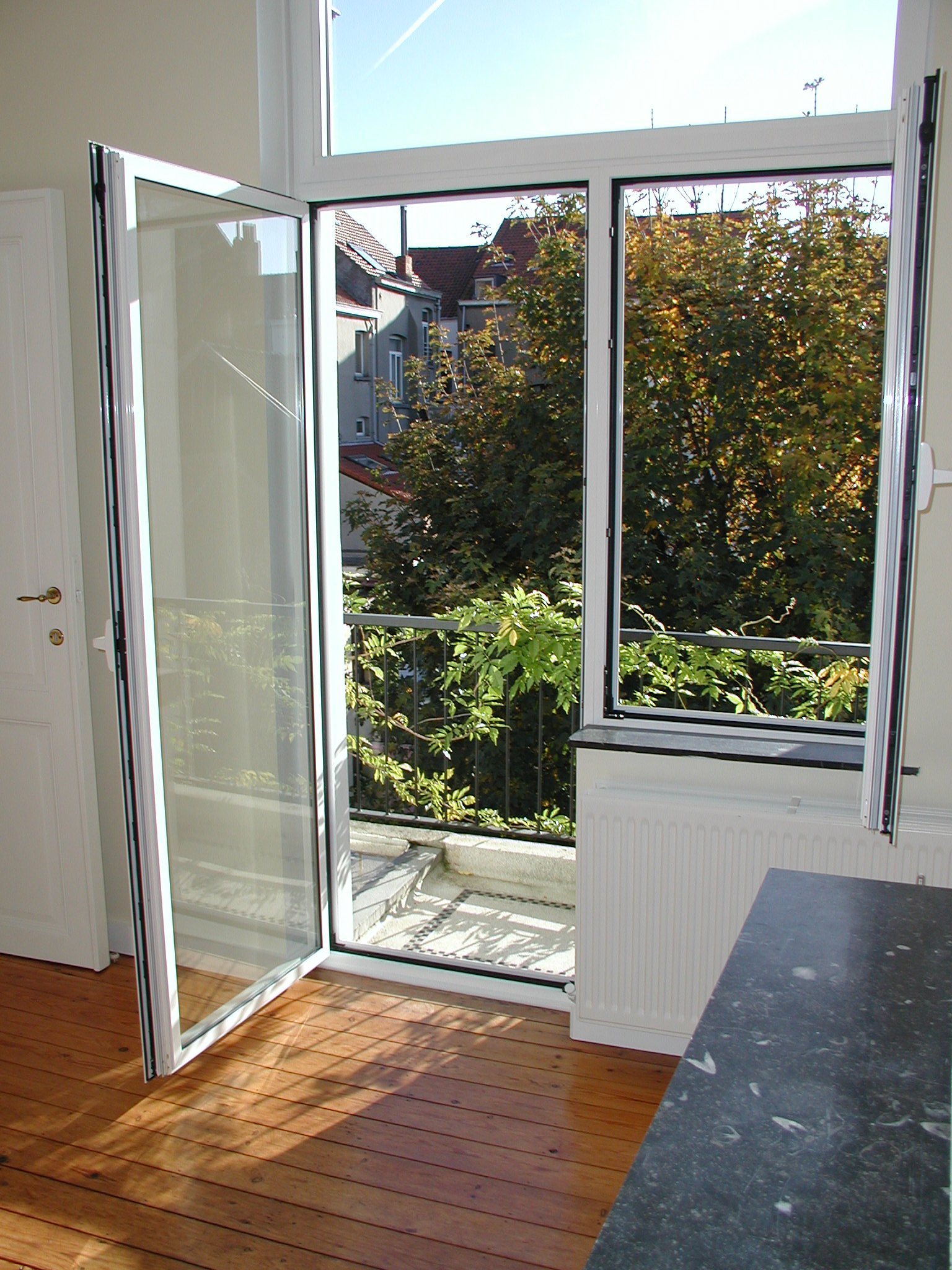 | A window and a French window opening onto a balcony |