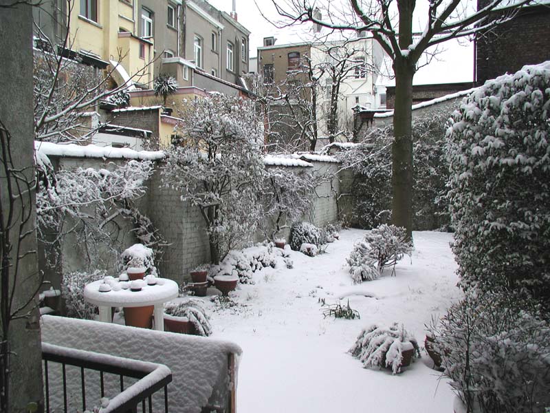 Le jardin en hiver 2004. C'est beau, la neige ! |